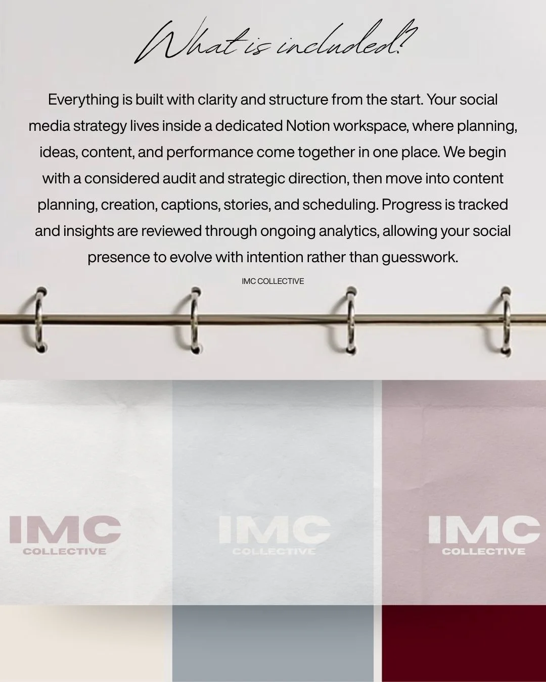 • A strategic, story-led approach to social media that brings structure to your brand and meaning to your content. This is about shaping a clear narrative, showing up with purpose, and creating a presence that feels considered rather than constant.